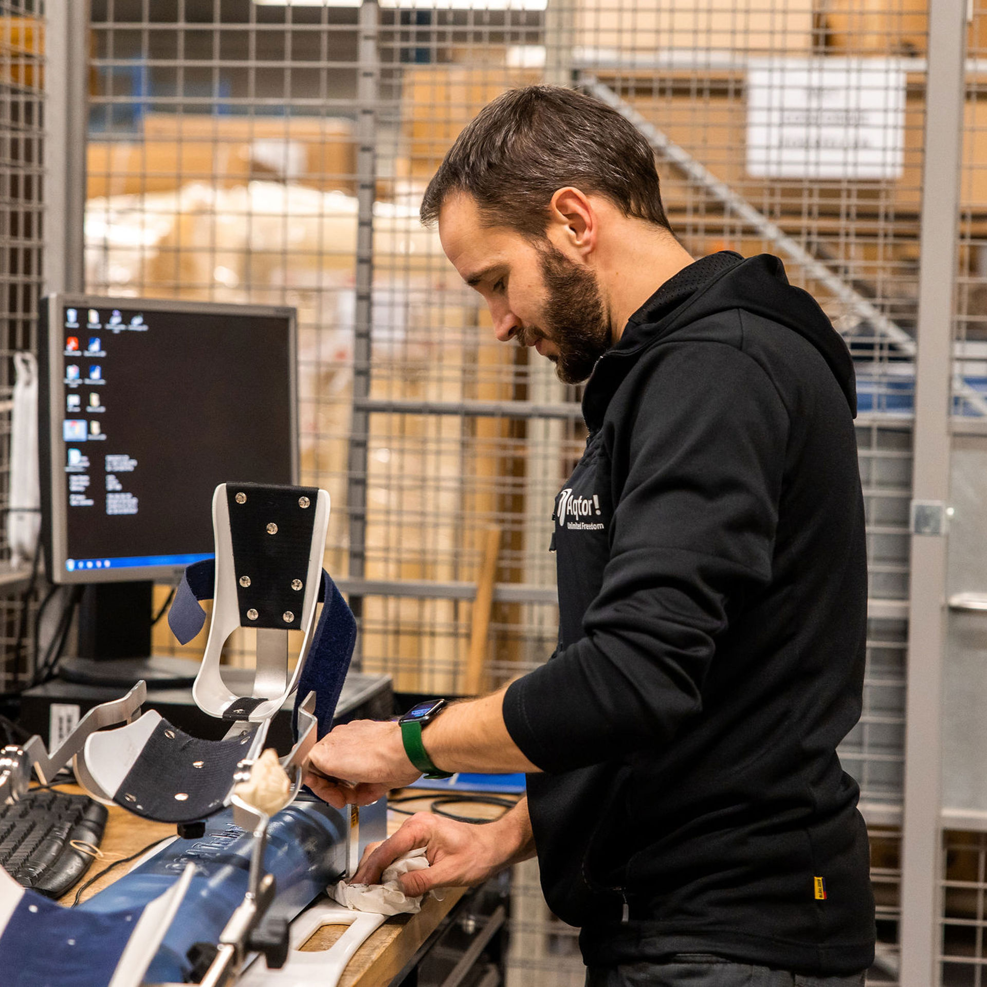 We investeren permanent in de ontwikkeling en optimalisatie van producten die een therapeutische meerwaarde en bijhorende verhoging van de levenskwaliteit teweegbrengen. Samen met geneesheer-specialisten, kinesisten, ergotherapeuten, podologen en andere zorgprofessionals volgen we de trends en veranderingen in de markt. Op basis van de verworven inzichten zorgt onze R&D-afdeling voor de continue ontwikkeling van nieuwe producten, technieken én technologieën die in het hele proces - van maatname tot aflevering - toegepast worden..
